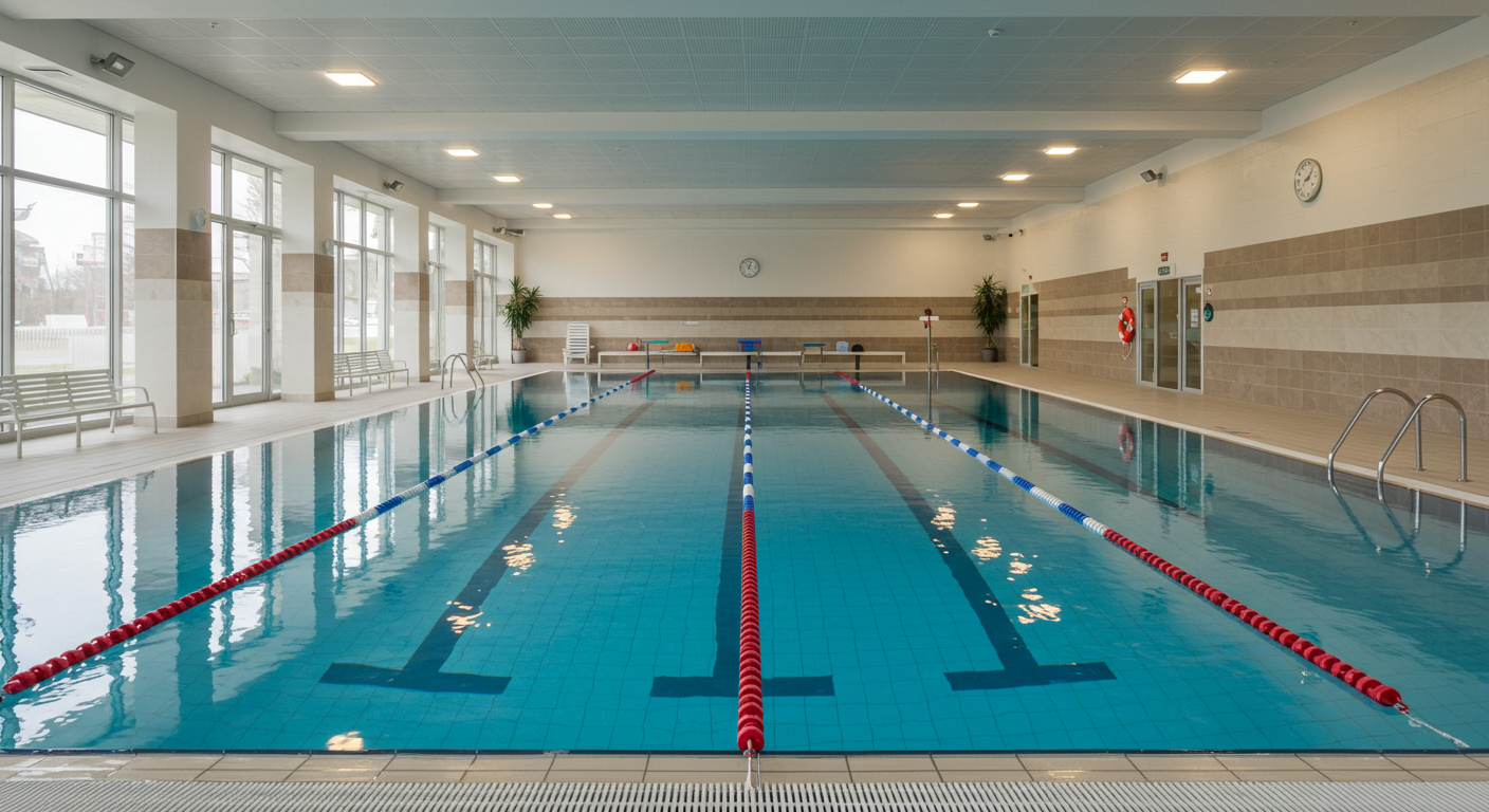 With sweeping views of the city, this 64-foot pool is perfect for floating or swimming laps. It’s slightly curved to match the style of the building and lounge chairs and tables line the floor-to-ceiling windows.