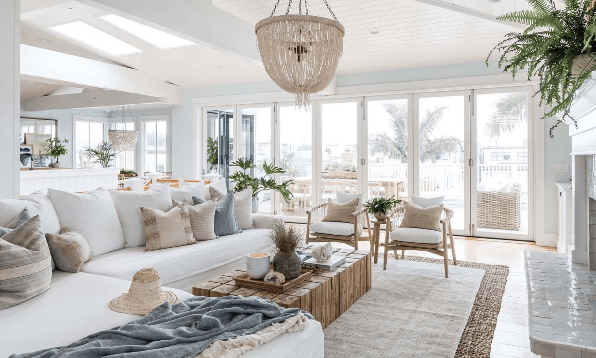 Coastal designs place a strong emphasis on light and breezy looks inspired by the water and beach. By sticking to a color palette that is reminiscent of the ocean, sand, and sky — pure whites and neutral tones — everything transitions seamlessly from one season to the next, blending together for a calming atmosphere.