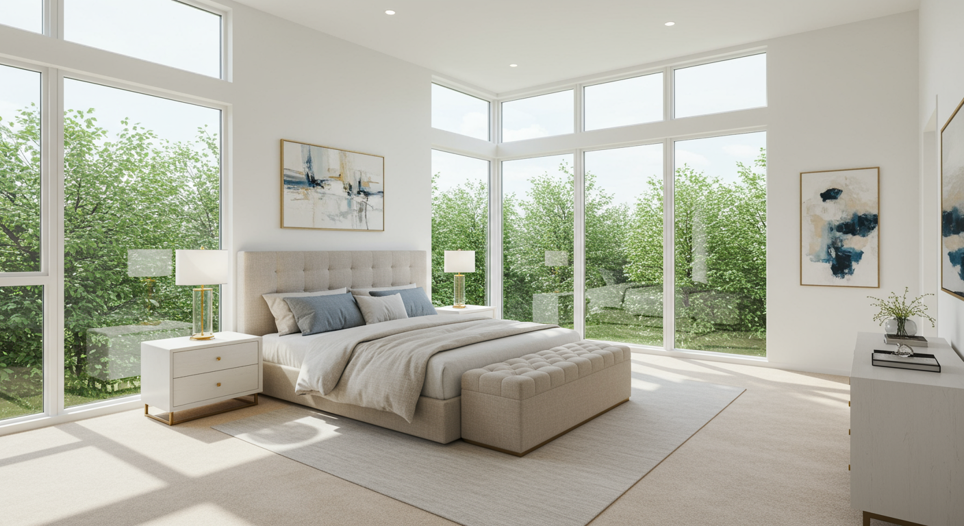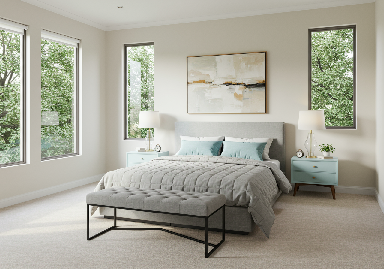 Four bedrooms including primary suite with custom walk-in closet and two additional bedroom custom closets.