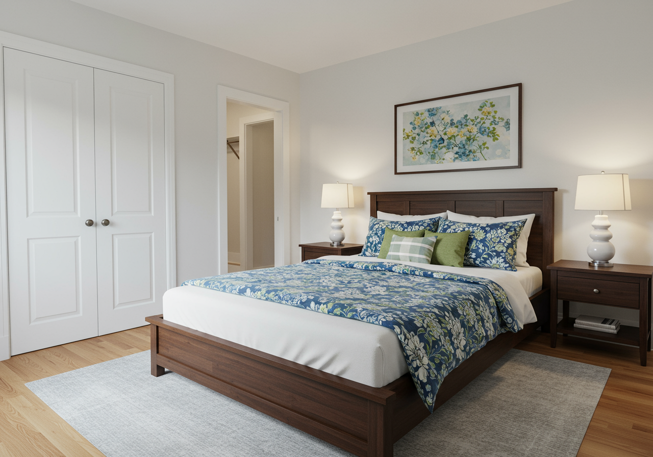 Master Bedroom is bright with city views, can accommodate a king bed and has a closet system.