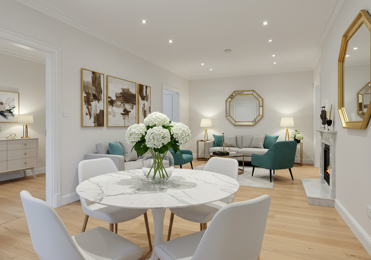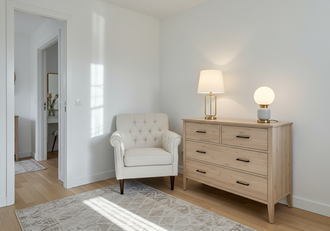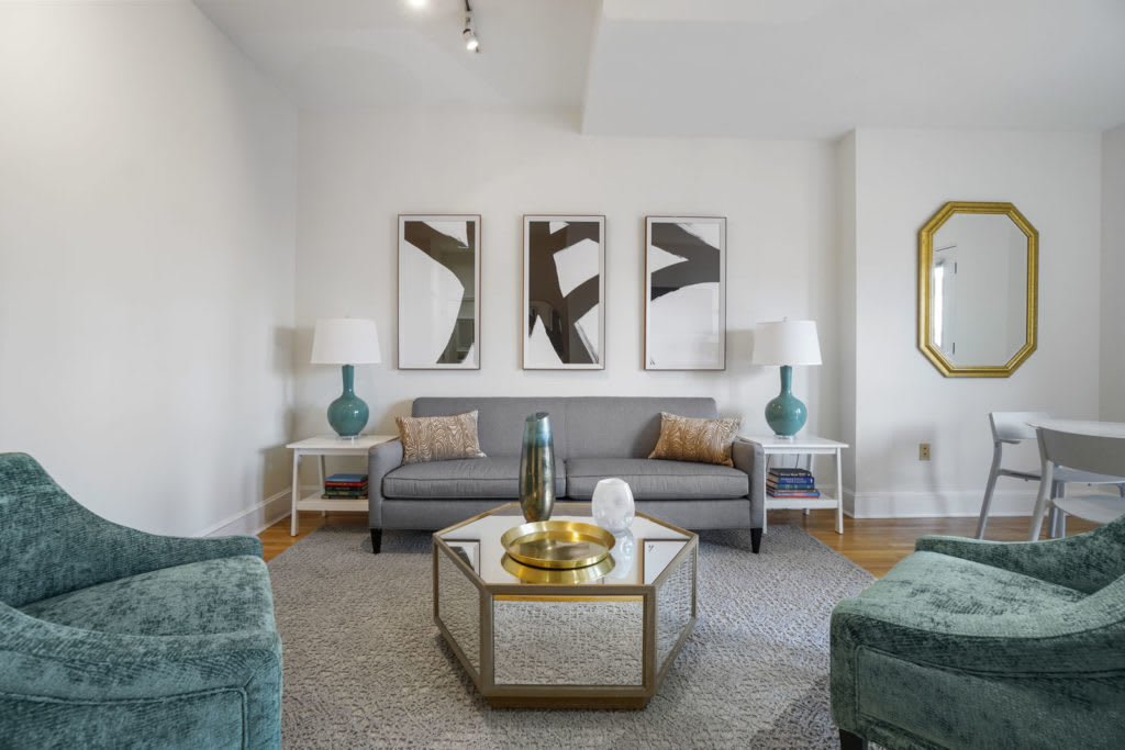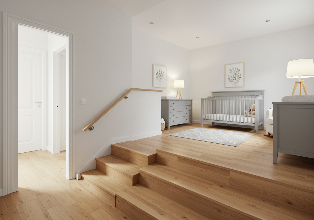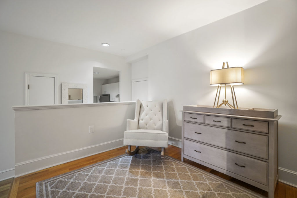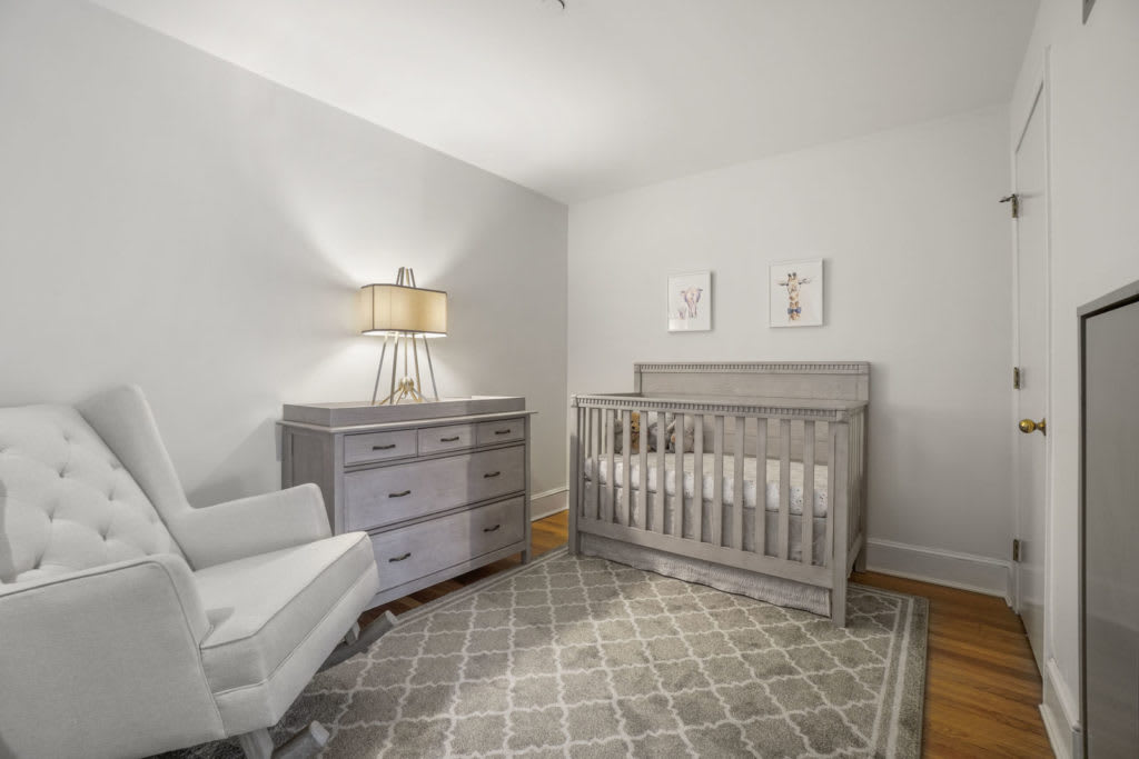 Second bedroom with closet is an open area and could be enclosed. Great space for a home office, guests, nursery (as shown), dining or some multi-functional use, and can be adapted as needs.