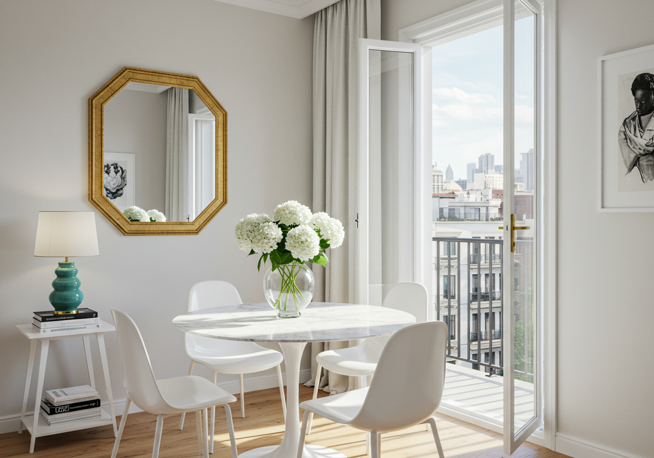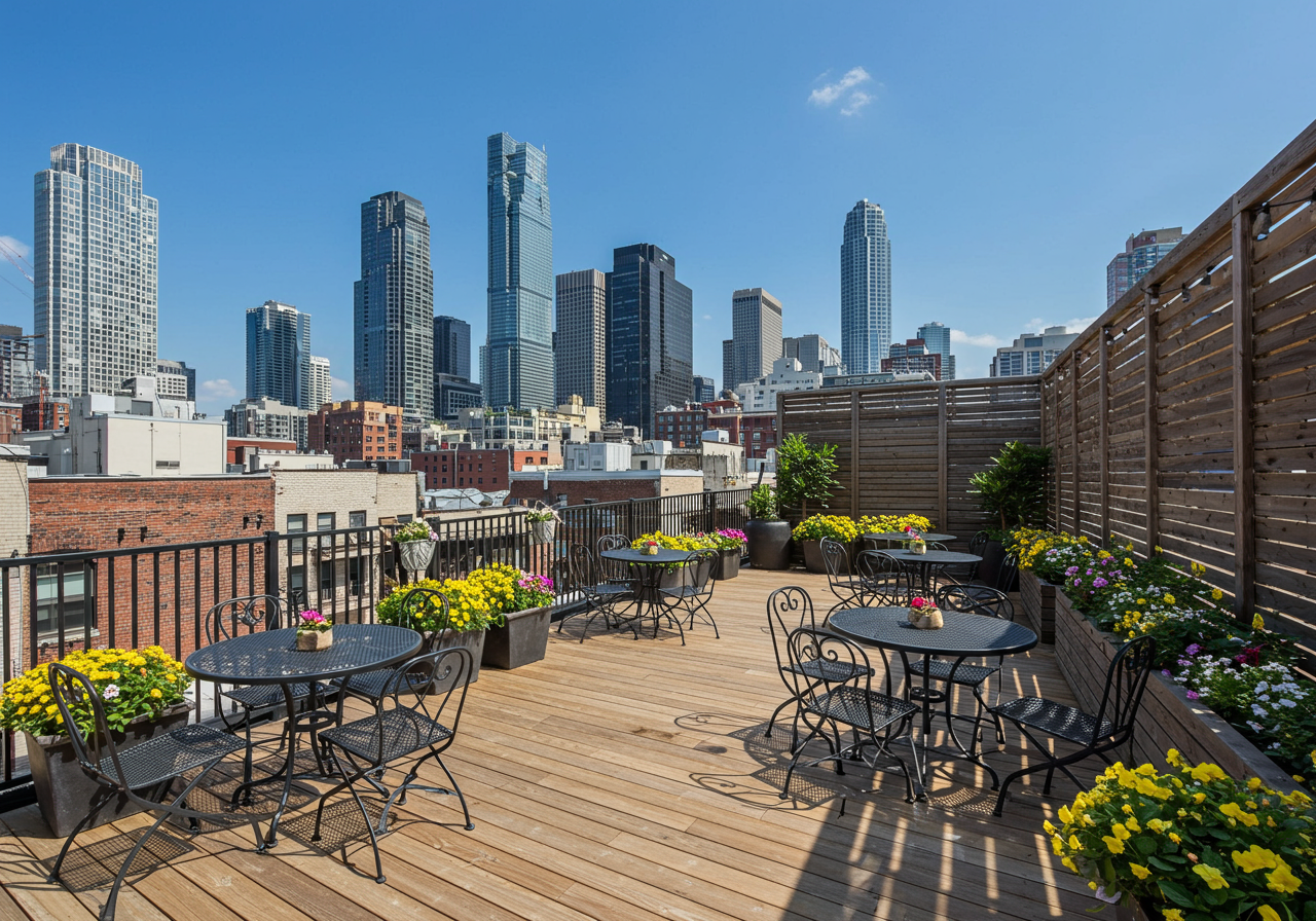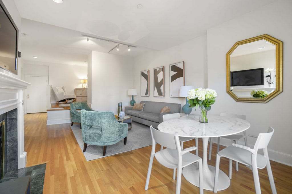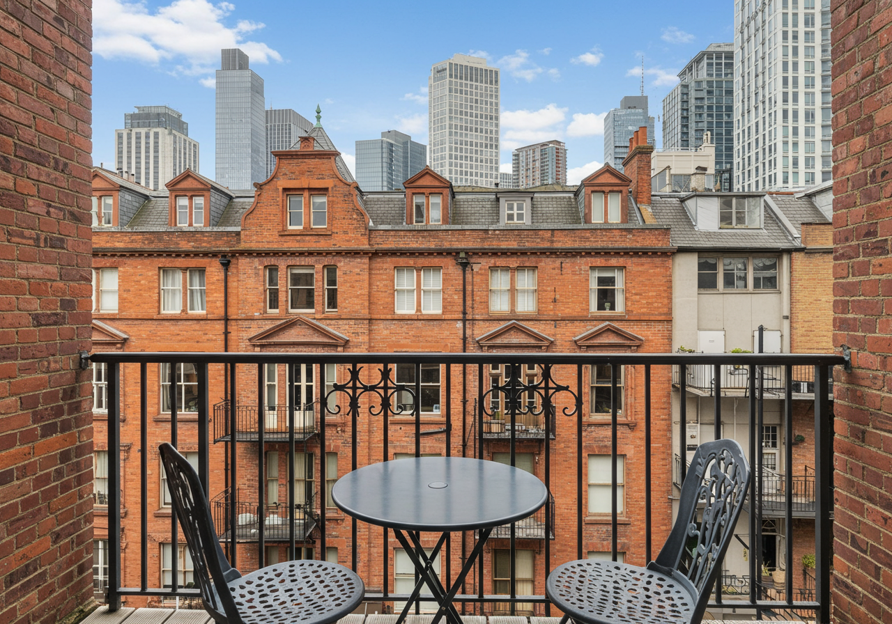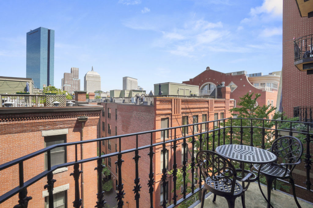 Elevator access to a bright main living area features high ceilings, a wood-burning fireplace and a charming private balcony/terrace with exceptional city views.