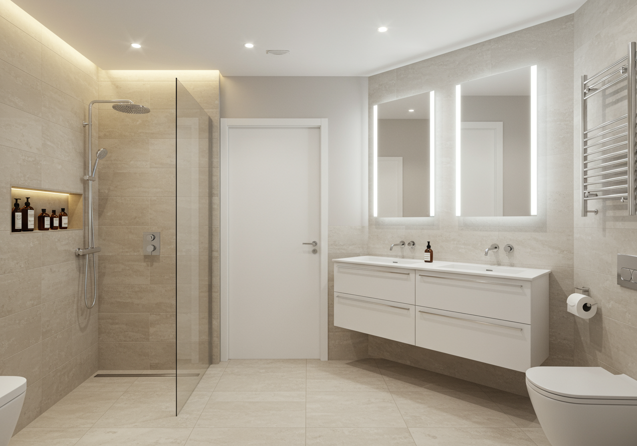 Master bedroom boasts a walk-in closet, ensuite master bath with dual vanity and oversized spa-like shower.