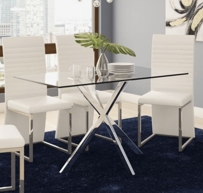 Lighting, glass, and mirrors all work to create a bright vibe that can make space appear larger and lighter. Looking to lighten up? Use a glass table instead of a wood table, as it takes up less visual real estate.