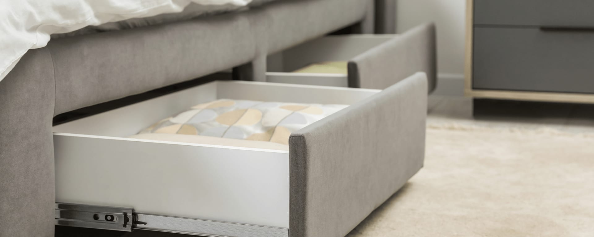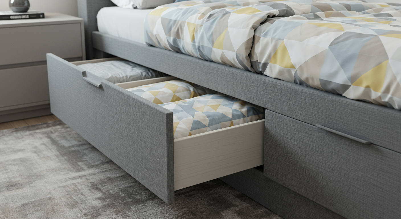 4. Under-bed storage: Utilize the space under your bed by using storage containers or bins for items like clothing, shoes, or extra bedding.