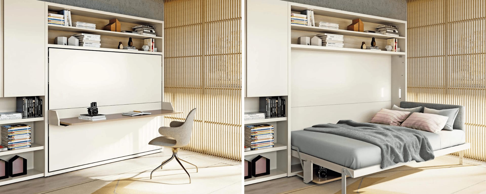 10. Wall-mounted desks: Install a wall-mounted desk that folds down when needed and can be tucked away when not in use, providing a functional workspace without taking up floor space.