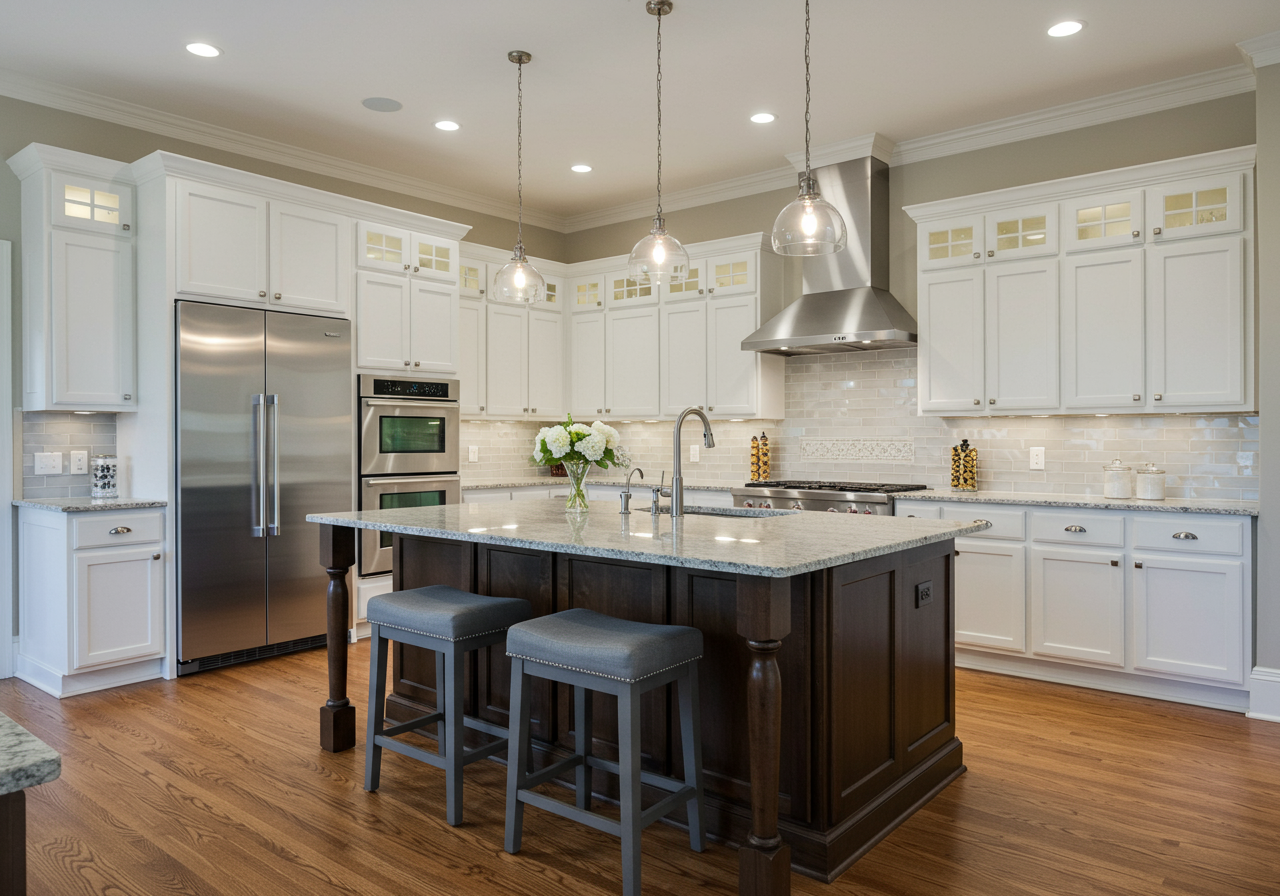 Kitchens that are bright with modern stainless-steel appliances, stone countertops (quartz or granite) and an island or peninsula with counter seating, provide contemporary style while offering ample space for quick breakfasts, casual dining, entertaining or a place to work from home.