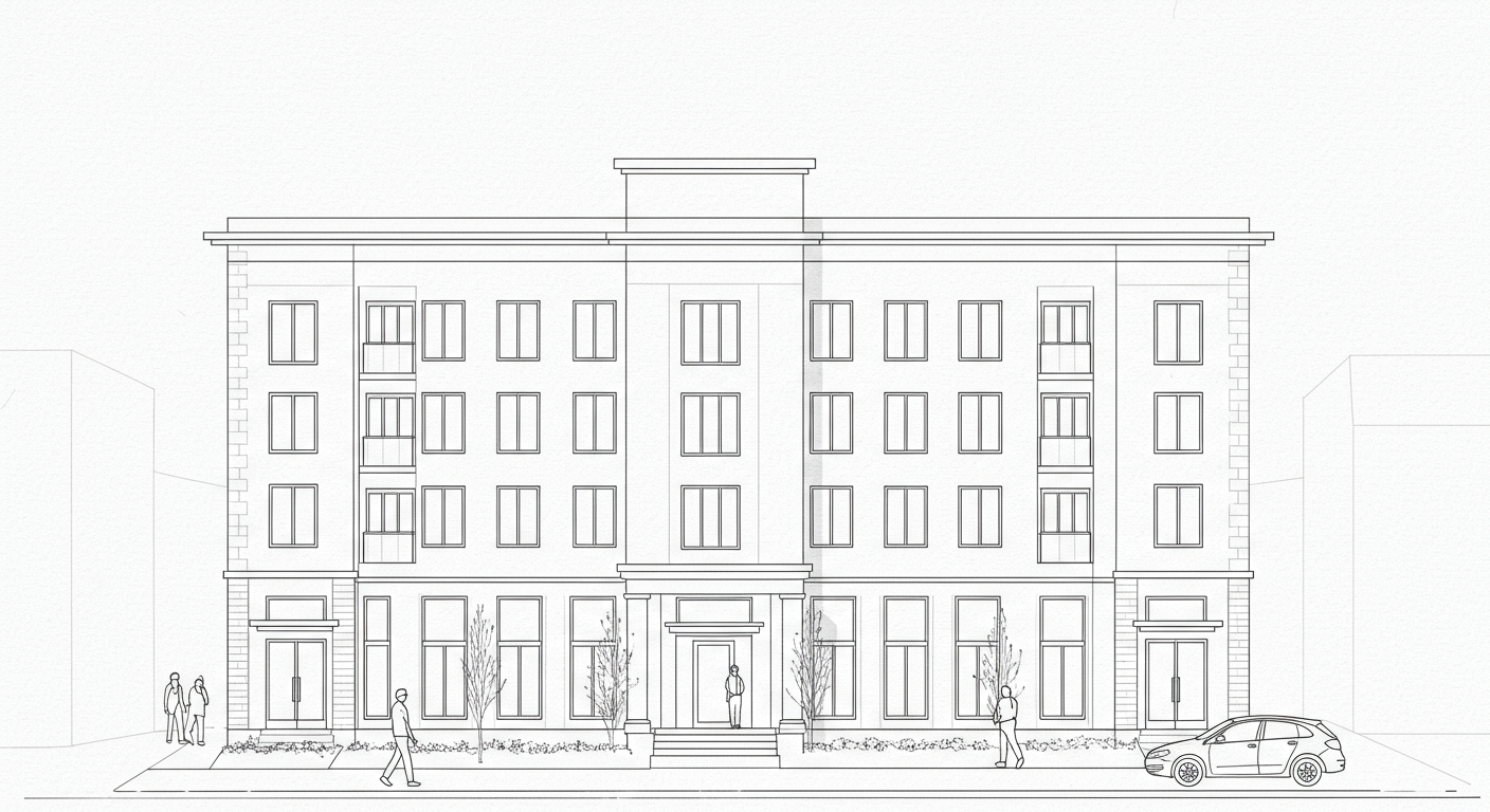 Board approved in February, this five-story 34-unit residential condominium building just steps from Andrew Square combines a number of parcels and replaces existing single and multi-family homes on the block.